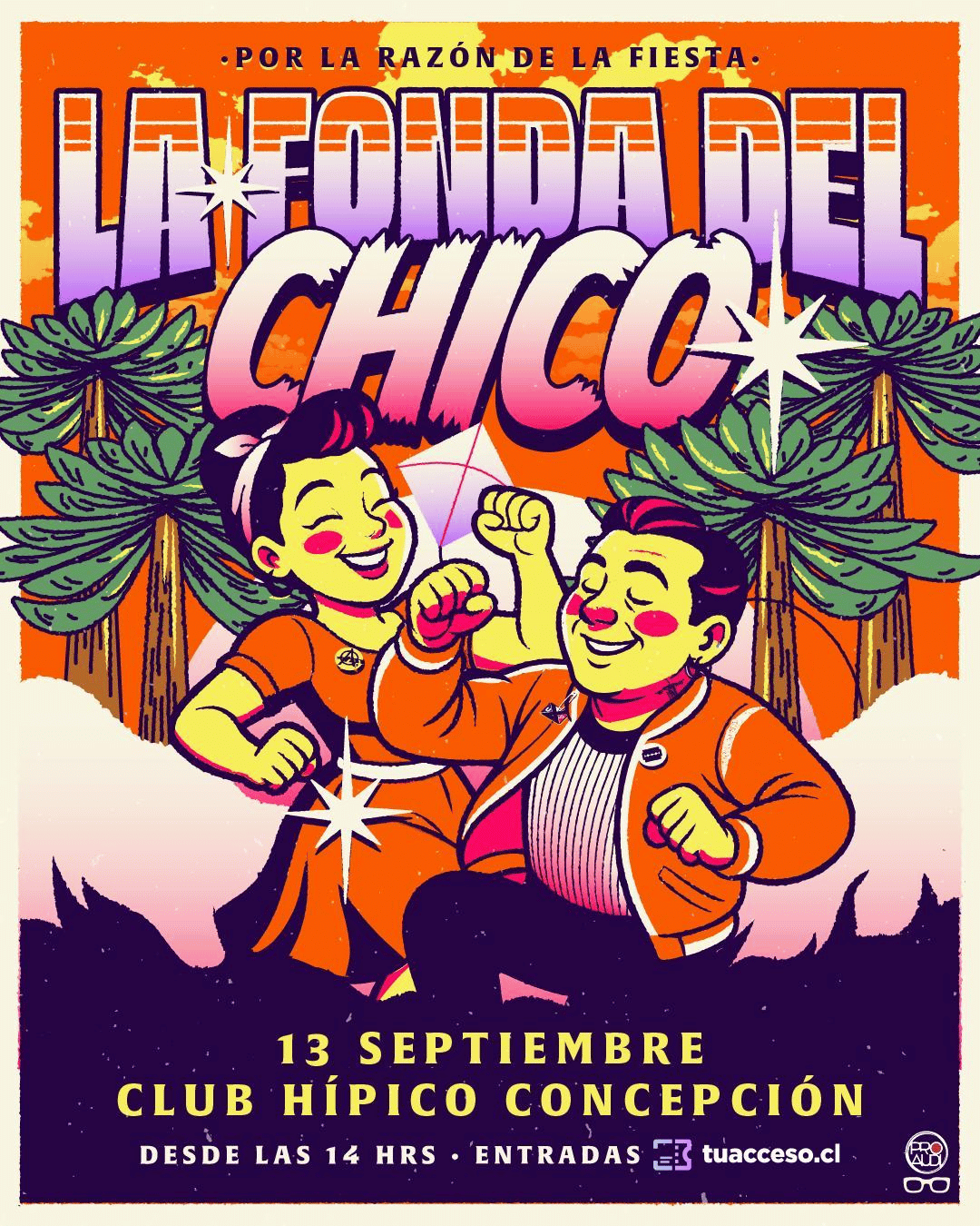 Celebra las Fiestas Patrias antes de tiempo en La Fonda del Chico, el sábado 13 de septiembre de 2025 desde las 14:00 hrs, en el Club Hípico de Concepción. Un panorama lleno de sabor y ritmo con artistas destacados como Chico Trujillo, Amar Azul, Pablo Chill-e, Benja Duarte, Jalá Jalá, Peregrinos del Amor, Pablito Pesadilla, Tata Barahona, Machu­ca, Evelyn Cornejo, Capricho de Luna, entre otros. Precios desde preventa (verde) $10.000 hasta general el día del evento $22.000.